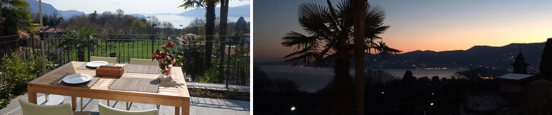 Von der großen Terrasse im Erdgeschoss überblickt man den Lago Maggiore von Ost nach West. Selbst vom Gartenhof aus ist der See wunderbar zu sehen. Und vom Balkon im 1. OG ist das See-Panorama besonders beeindruckend.